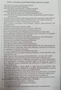 - 2013 – WC Meet, Hyderabad in February with 15 States and Srilankan Journalists. 33 No’s Team, 13 States, weeklong visit Sri Lanka, IMJU Formation on 15th AUG IN INDIAN EMBASSY, Colombo